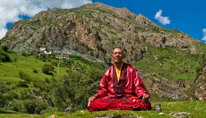 If you know anything about Tibetan Buddhism, you can infer a significant amount of information about this individual’s way of life simply from looking at their style of dress, their hair, and what they are carrying in their hands.